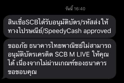 สุดท้ายการที่ติดต่อผ่าน call center แล้วไม่สามารถประสานงานช่วยเหลือใดๆได้จะมีไปไว้ทำไม ถามว่าสารมารถประสารเรื่องได้ไหมก็บอกทำไม่ได้ต้องยื่นใหม่หลังจากนี้อีก 6 เดือน ตรงจุดนี้แหละที่อดโมโหไม่ได้ ที่ทำงานใหม่เค้ายังไม่ได้ให้สลิปเงินเดือนไหม เราไม่ได้ตกงานหรือมีปัญหาการเงิน มันมีเหตุผล ก็ถามเค้าว่าเราจะยื่นเรื่องใหม่ได้ไหมพร้อมบอกเหตุผลแต่คำตอบที่ได้คือ ต้องยื่นใหม่อีกครึ่งปีคือมันใช่เหรอ เป็นความผิดลูกค้าใช่ไหมที่ทะลึ่งเปลี่ยนงานในจังหว่ะนั้น ผิดหวัมากกับธนาคารที่ใช้บริการมามากกว่า 15 ปี อีกสองวันถึงจะว่างผมคงไปทำเรื่องยกเลิกบัญชีทุกอย่างกับที่นี่เสียความรู้สึกมาก ใครที่คิดจะใช้บริการก็ดูผมเป็นตัวอย่างละกันครับ เอปพลิเคชั่นยังขึ้นว่าอยู่ในระหว่างพิจรณา แต่พอคุยกับคอลเซนเตอร์เสร็จแปปที่บิกว่าไม่ผ่าน ต้องยื่นเรื่องอีกครึ่งปี ข้อความเข้ามาเลยจ้าว่าเครดิตไม่ผ่านผ่านแต่บัตรเงินสด มีหลักฐานหมดนะครับ