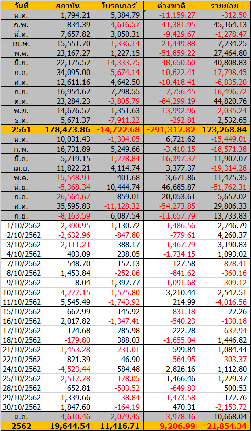 Sinthorn Summary 30/10/2562 : ต่างชาติซื้อสุทธิ 470.31 ลบ.