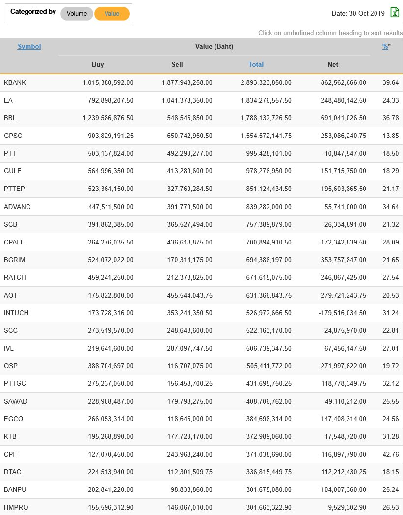 นักลงทุนต่างชาติ NVDR ซื้อ-ขาย สูงสุด 25 อันดับ 30/10/62