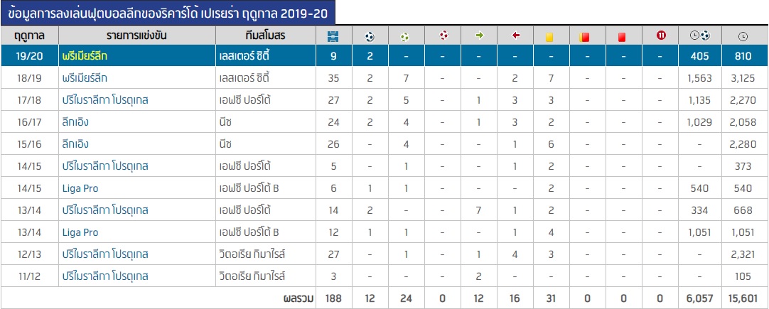 ผมขอนำเสนอคนนี้เลย Ricardo Pereira นักเตะจากค่าย เลสเตอร์นั่นเอง 5555 ย้ายมาด้วยค่าตัวเพียง 27ล้านปอนด์แต่ฟอร์มและการเล่นน่าทึ่งมากซึ่งผมติดตามเลสเตอร์อยู่บ้างเหมือนเห็นพี่คนนี้เล่น ดูคล่องและขึ้นมาหาจังหวะยิงได้บ่อยๆ อีกทั้งยังทำแอสซิสให้เพื่อนได้พอสมควรเลย