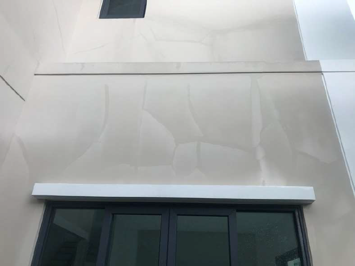 พบรอยที่ผนังตามในรูปตอนฝนตก พอแดดส่องจนผนังแห้ง กลับไม่มีรอยดังกล่าว