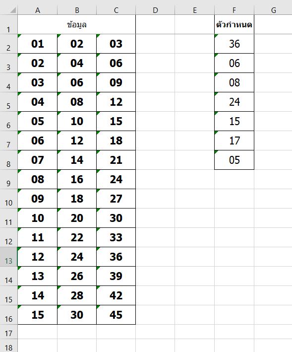 เช่น ตัวกำหนดคือ 06 เท่ากับว่าช่อง A7 , B4 2ช่องนี้พื้นหลังต้องเปลี่ยนสีเป็นสีอื่นอะครับ