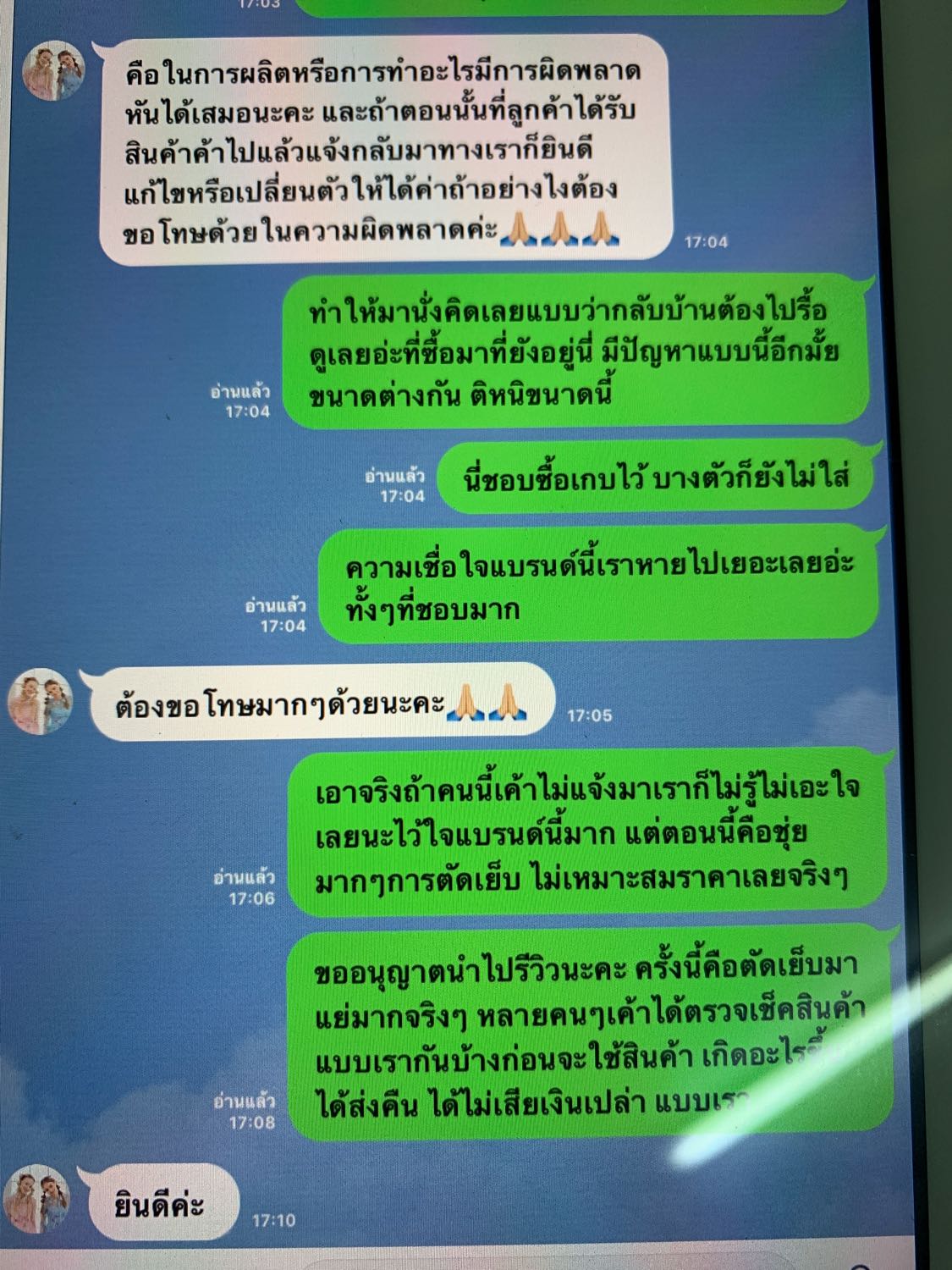 จุกๆ กันไป เราอยากมาเตือนเพื่อนๆ ว่าควรตรวจสอบเสื้อผ้าให้ดูตอนได้รับ อย่าไปเกรงใจเงินเรา ของๆ เรา ไม่งั้นจะตำน้ำพริกละลายแม่น้ำแบบเราค่ะ