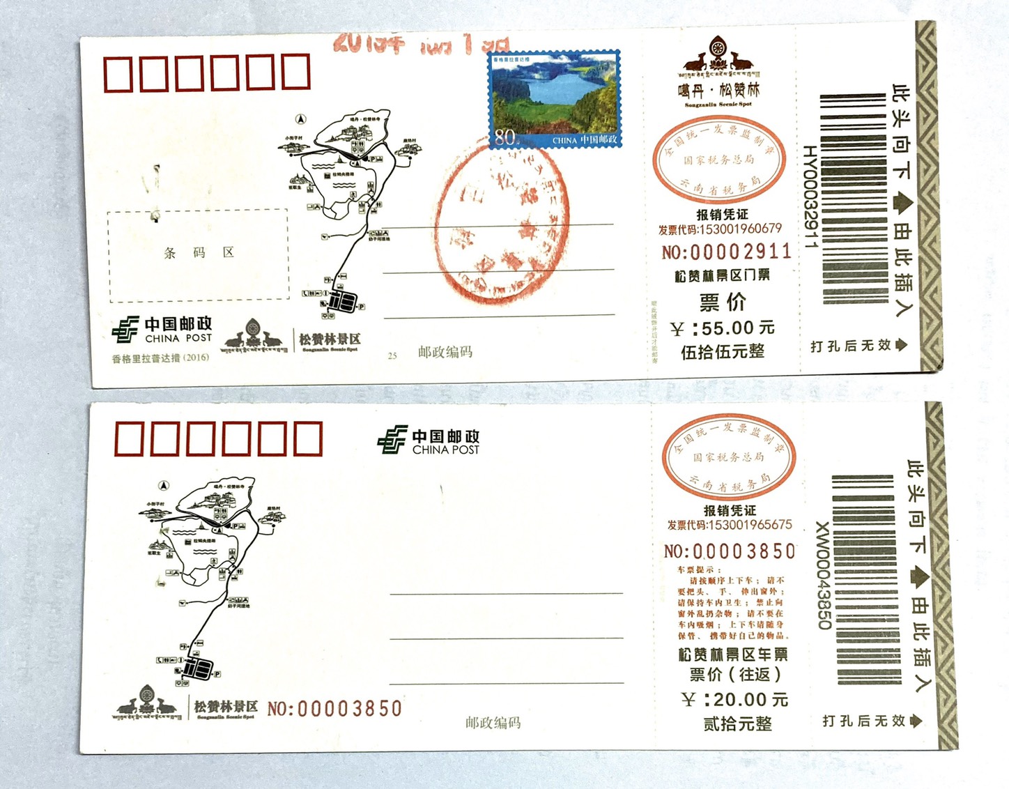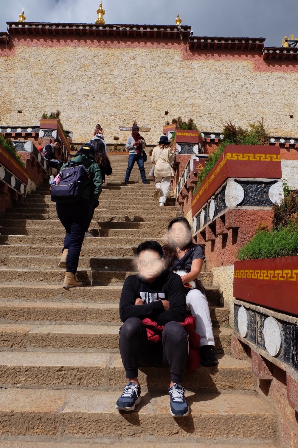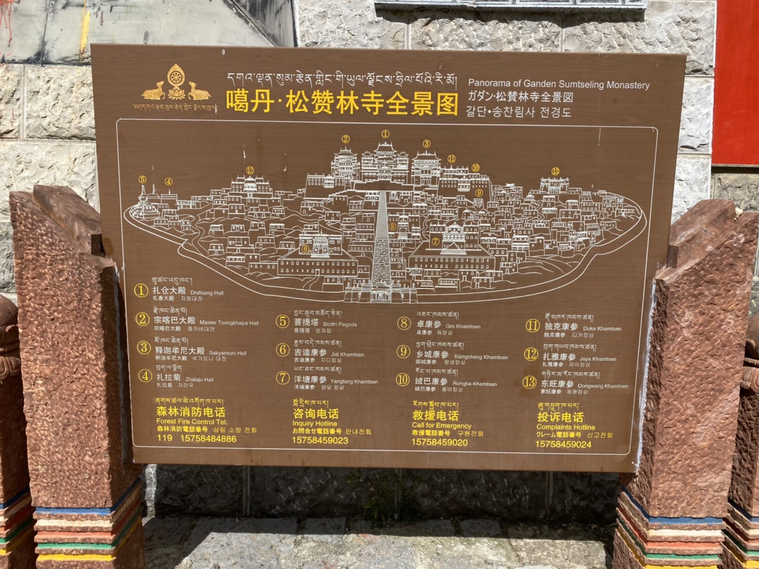 วันที่ 19th Oct 19 มาถึงแชงกรีล่า ช่วงเช้า เข้าที่พัก และพักผ่อนก่อน เพราะเหนื่อยล้าจากการนอนไม่เต็มอิ่มที่สนามบินคุนหมิง เดินขึ้นห้องไปชั้น2 รู้สึกยังก๊ะวิ่งแข่ง100เมตร นอนพัก พอช่วงบ่ายก็ขอเหมารถรับส่งไปกลับ(ราคารวม 200CNY ได้รถเก๋ง 2 คัน) ไปวัดซงจ้านหลิน Songzhanlin 松赞林寺 (อ่านว่า ซง-จ้าน-หลิน-ซื่อ) เป็นวัดฑิเบตที่จำลองมาจากพระราชวังโปตาลาในฑิเบต ไปถึงจะต้องเสียค่าเข้าคนละ 75CNY ซึ่งเป็นค่าเข้าชมสถานที่และค่ารถบัสที่รับส่งจากประตูทางเข้าไปยังวัดด้วย แต่เราจะต้องบอกเจ้าหน้าที่ว่าขอซื้อตั๋วแบบ 75 หยวน ไม่งั้นเจ้าหน้าที่จะขายตั๋วใบละ 90 หยวนให้เรา ซึ่งเป็นตั๋วที่รวมไกด์ซึ่งพูดภาษาจีนไว้(แต่เราฟังไม่ออก) เวลาไปซื้อตั๋วก็บอกว่า (ชี-สือ-อู่-หยวน-เพี่ยว = 75 Yuan Ticket) จะซื้อกี่ใบก็ชูนิ้วเอา พอได้ตั๋วแล้วก็เดินผ่านจุดตรวจสแกนตั๋ว แล้วก็รอรถบัสตรงนั้นเลย รถจะมีจุดจอดอยู่ 3 แห่ง เราลงระหว่างทางก้ได้