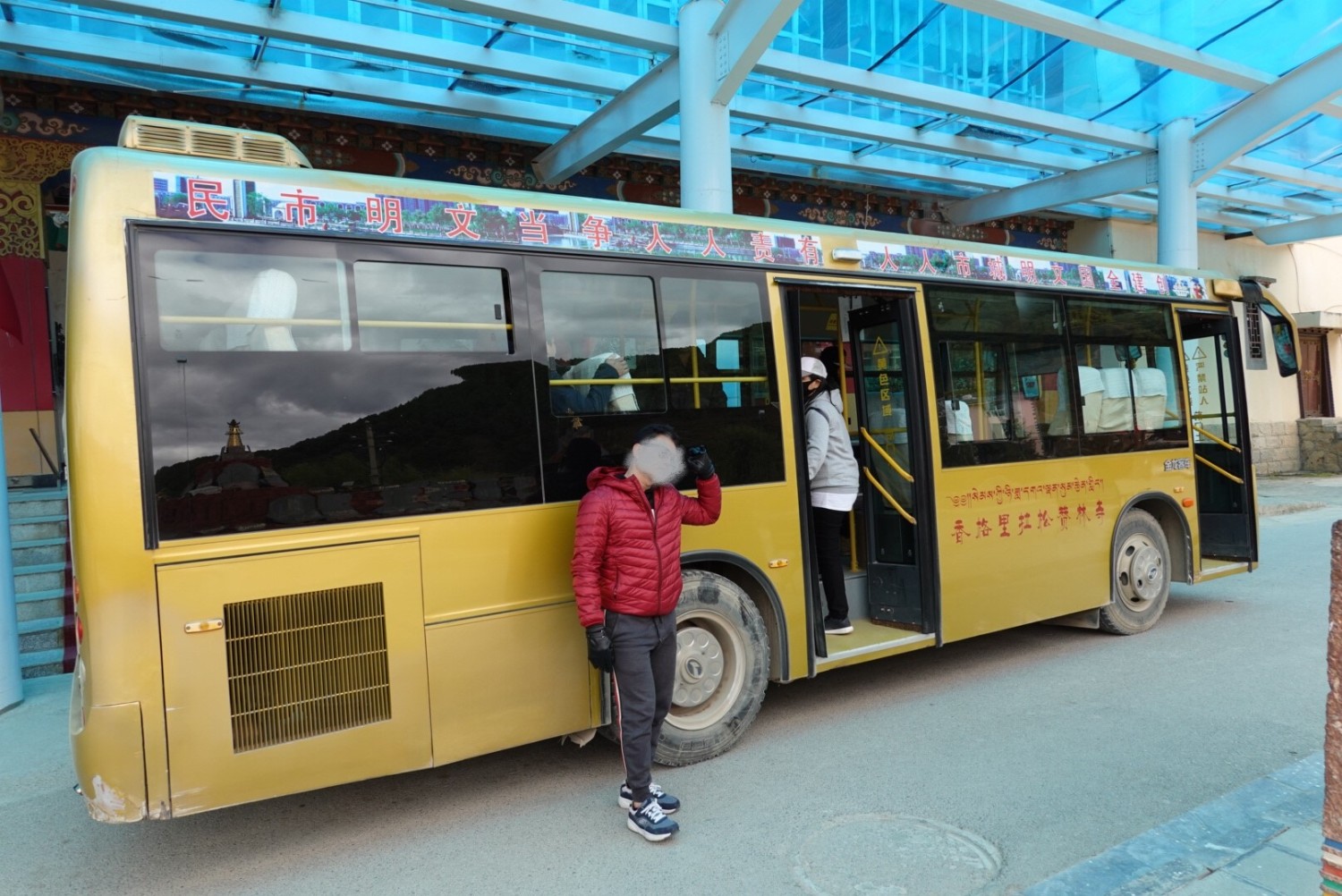 รถบัสที่โดยสารไปถึงทางเข้าวัดซงจ้านหลิน