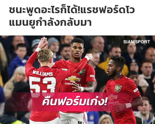มาร์คัส แรชฟอร์ด กองหน้าดาวรุ่งพุ่งแรง แมนเชสเตอร์ ยูไนเต็ด แสดงความมั่นใจว่าทัพ "ปีศาจแดง" กำลังค่อยๆ กลับมาสู่ฟอร์มเก่งอีกครั้ง หลังจากเพิ่งจัดการยัดเยียดความปราชัยในแมตช์บุกชนะ เชลซี 2-1 ศึกคาราบาว คัพ รอบ 4 (รอบ 16 ทีมสุดท้าย) เมื่อวันพุธที่ผ่านมา