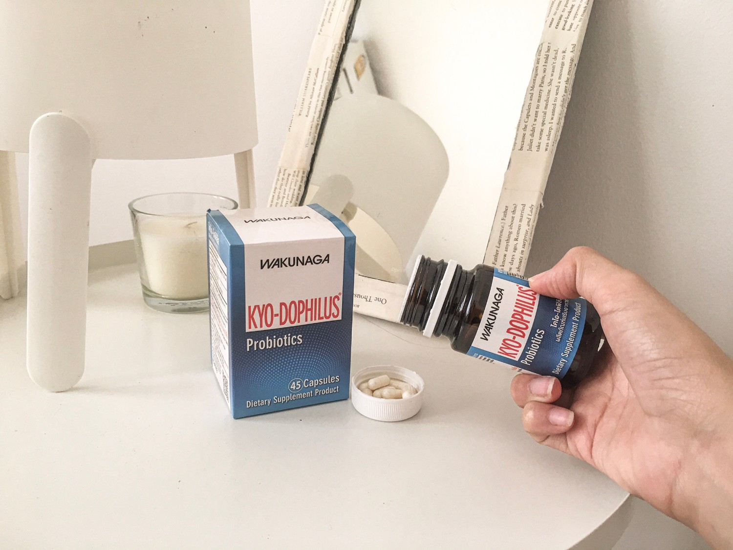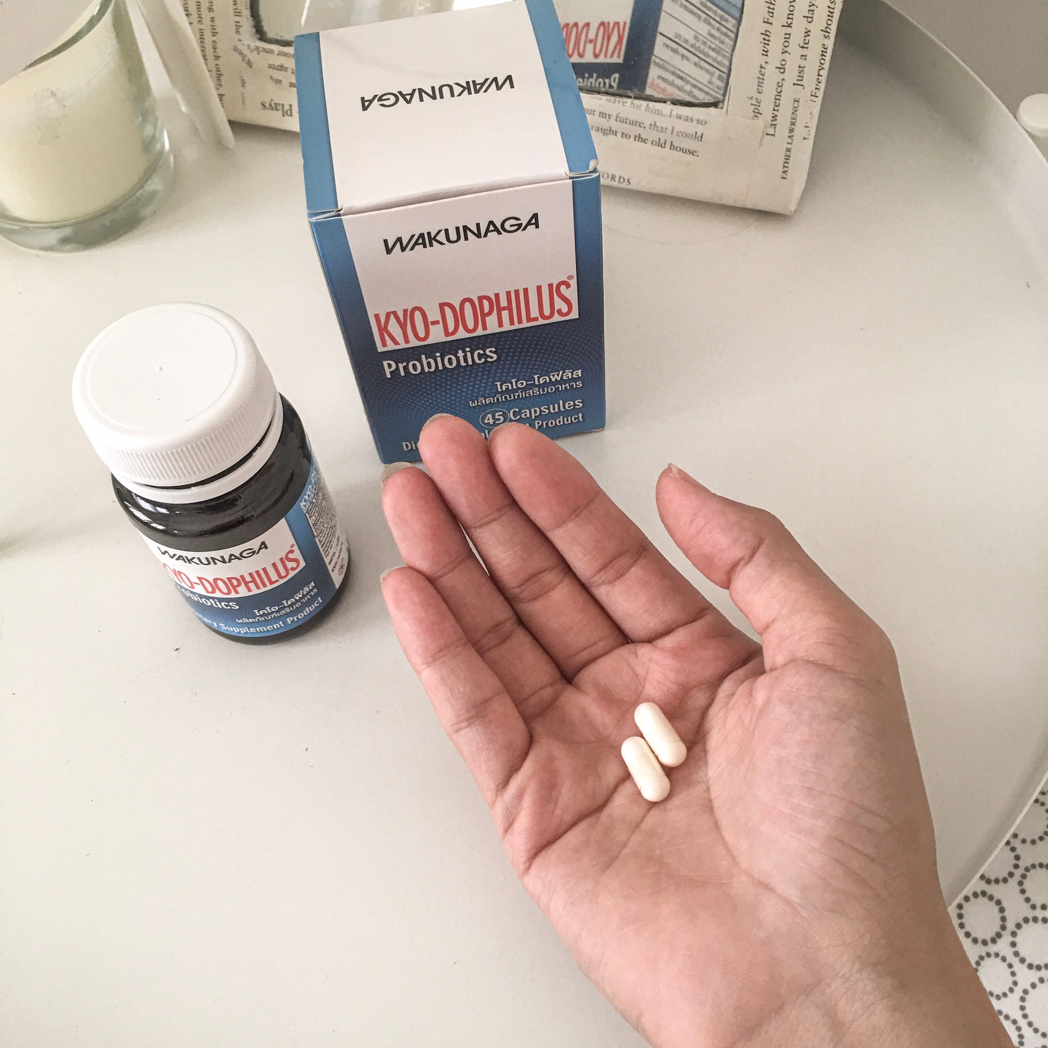 วิธีที่สาม พึ่งตัวช่วยในการถ่ายท้อง ในที่นี้ไม่ได้บอกให้พึ่งยาถ่ายมาก ๆ นะคะ แต่ให้กินผลไม้ที่มีกากใย หรืออาหารที่ช่วยให้ถ่ายง่าย อย่างตอนนี้เรากินตัวนี้อยู่ Kyo Dophilus เป็น Probiotics ค่ะ