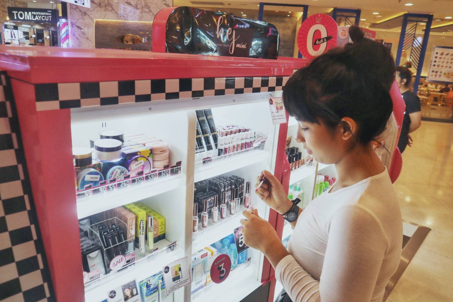 ร้านออกแบบให้เป็น รูปรถมินิบัส ที่ขนเครื่องสำอางค์มา น่ารักมากๆ หลายแบรนด์เลยทีเดียว เลือกกันให้ตาแตก. เราก็โดนป้ายยามาหลายตัวเช่นกัน 5555