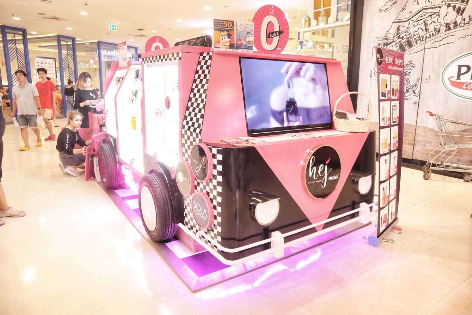 ร้านออกแบบให้เป็น  รูปรถมินิบัส ที่ขนเครื่องสำอางค์มา น่ารักมากๆ หลายแบรนด์เลยทีเดียว  เลือกกันให้ตาแตก. เราก็โดนป้ายยามาหลายตัวเช่นกัน 5555