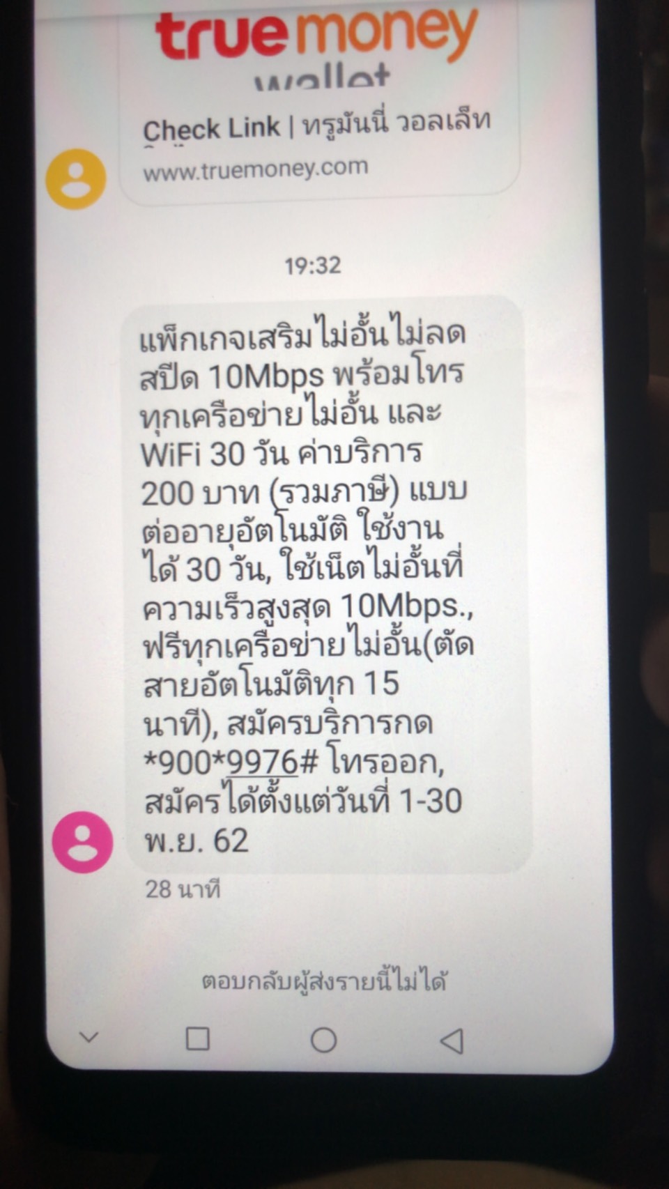 แจ้งร้องเรียนค่ายโทรศัพท์ ทรูมูฟ เอช แพคเกจ เน็ต 10G ไม่ลดสปีด 200 บาท