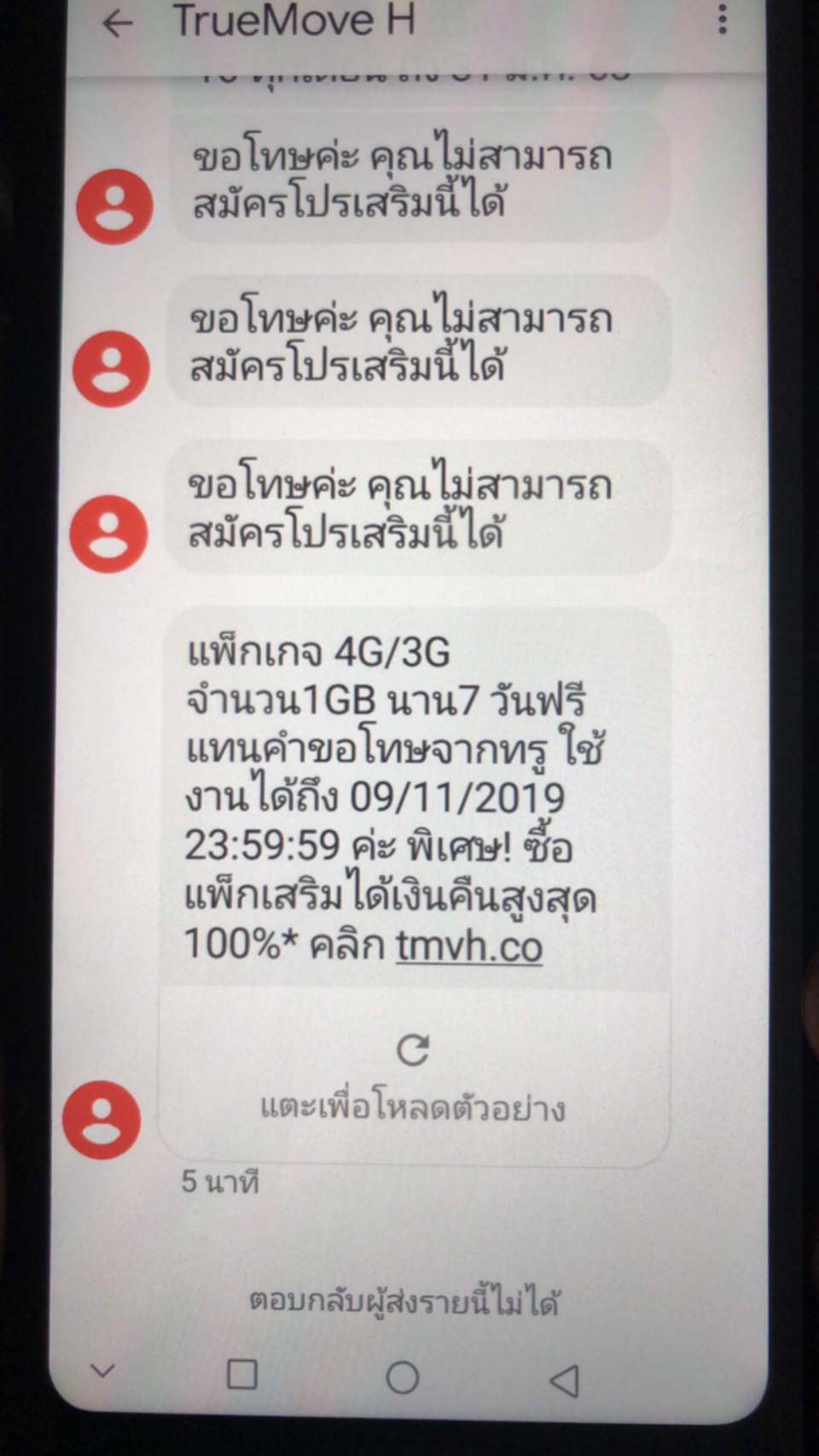 จึงทำการเติมเงิน และสมัครตามรายละเอียดที่แจ้งไว้ แต่กลับมีข้อความปฏิเสธกลับมาว่าไม่สามารถสมัครใช้บริการได้