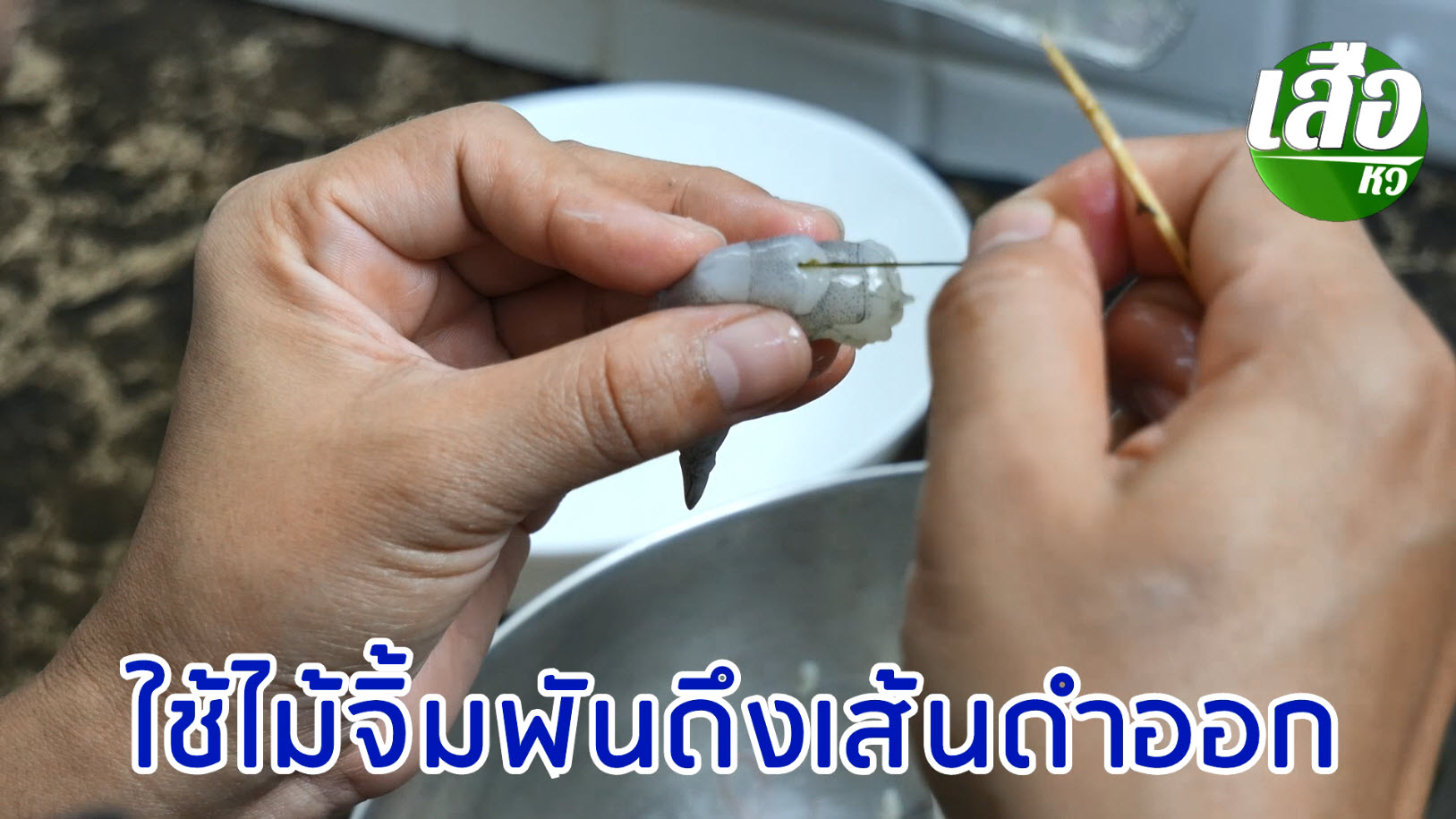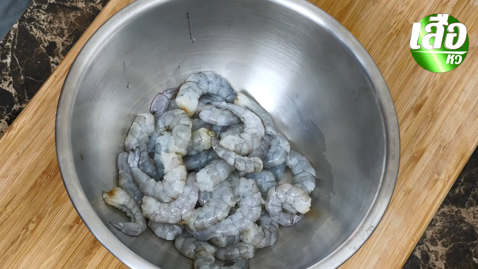 1. ล้างกุ้งให้สะอาด นำเส้นดำออกด้วย