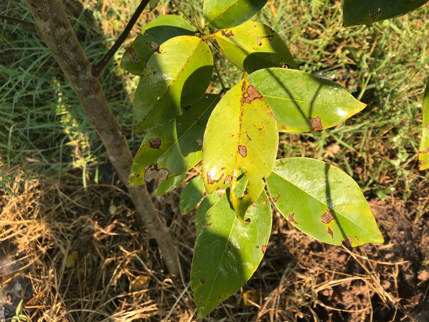 ซื้อต้นล่ำซำที่เป็นไม้ล้อมตุ้มมาปลูกค่ะ ปลูกได้ 5 เดือน แข็งแรงใบเขียวแตกใบอ่อนดี แต่เมื่อเดือนที่ผ่านมาแมลงกินใบ เจาะๆใบเป็นรู แฟนเลยใช้ยาสตาร์เกิลจี ใส่โคนต้นเพื่อกำจัดแมลงและพ่นยา ใบเริ่มเหลืองค่ะ