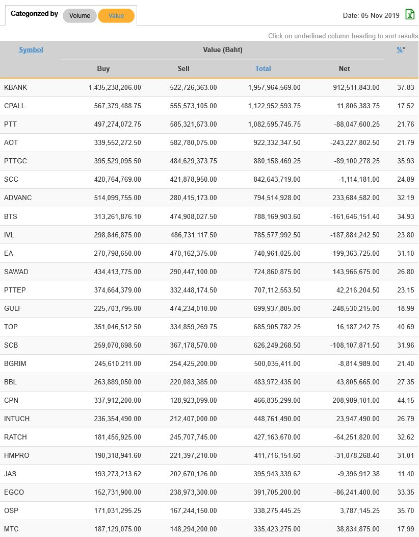 นักลงทุนต่างชาติ NVDR ซื้อ-ขาย สูงสุด 25 อันดับ 05/11/62
