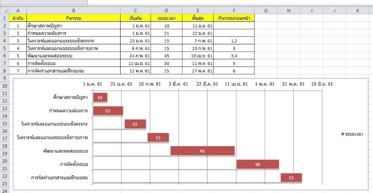 ตามหัวข้อครับ ต้องการสร้างกราฟแสดงระยะเวลา ตามตัวอย่าง ต้องสร้างตารางข้อมูล อย่างไร?