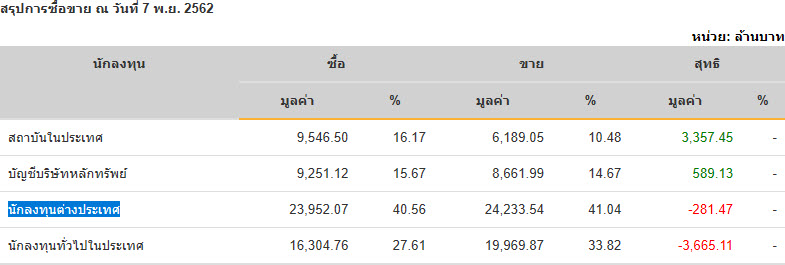 Sinthorn Summary 7/11/2562 : ต่างชาติขายสุทธิ -281.47 ลบ.