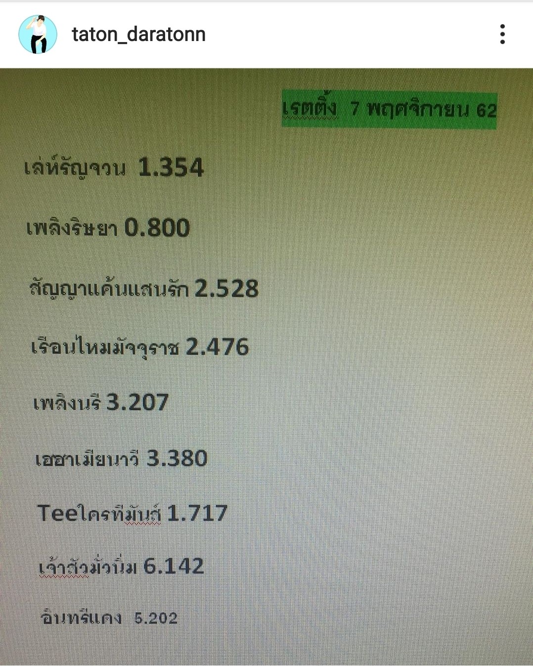 เรตติ้ง ละคร 7 พฤศจิกายน 2562