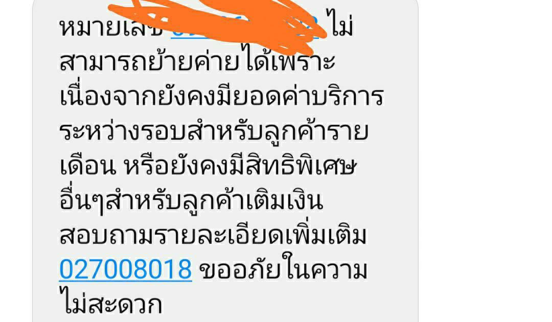 สอบถามเจ้าหน้าที่ทรูครับ ผมกดย้ายค่ายไม่ได้ SMS แจ้งว่ามียอดค้างชำระ (เป็นเบอร์เติมเงิน)