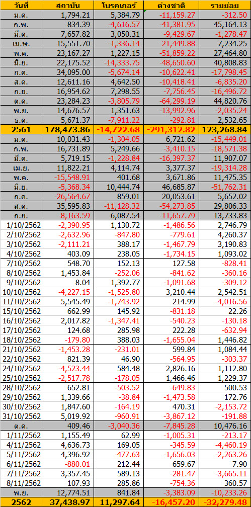 Sinthorn Summary 11/10/2562 : ต่างชาติซื้อสุทธิ 214.99 ลบ.