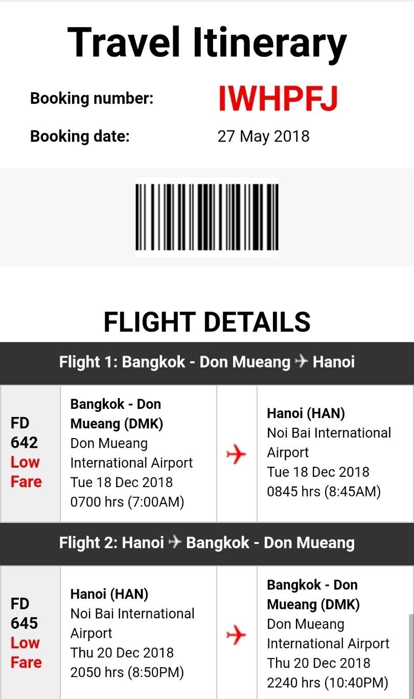1. เราจองเที่ยวบินของแอร์เอเชีย ขึ้นเครื่องที่ Don Mueang International Airport - Noi Bai Airport