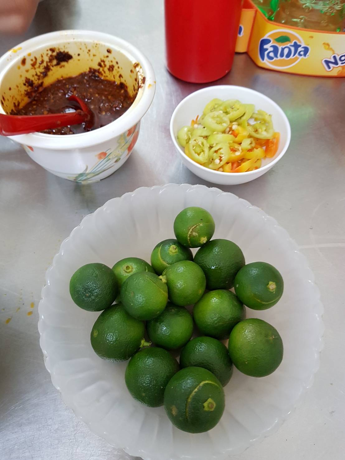 อันนี้เครื่องค่ะ ไม่รู้กินกันยังไง มันไม่ใช่มะนาวอ่ะคุณ มันคือส้มจี๊ดไรทำนองนี้ จะเปรี้ยวก็ไม่เปรี้ยวจะหวานก็ไม่หวาน มีพริกหยวกหั่น กับน้ำพริกกะปิ แค่นี้อ่ะค่ะ😱