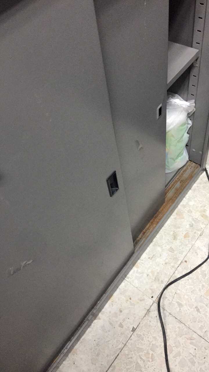 ตู้บานเลื่อนเหล็กติดเดือยล็อคด้านบน