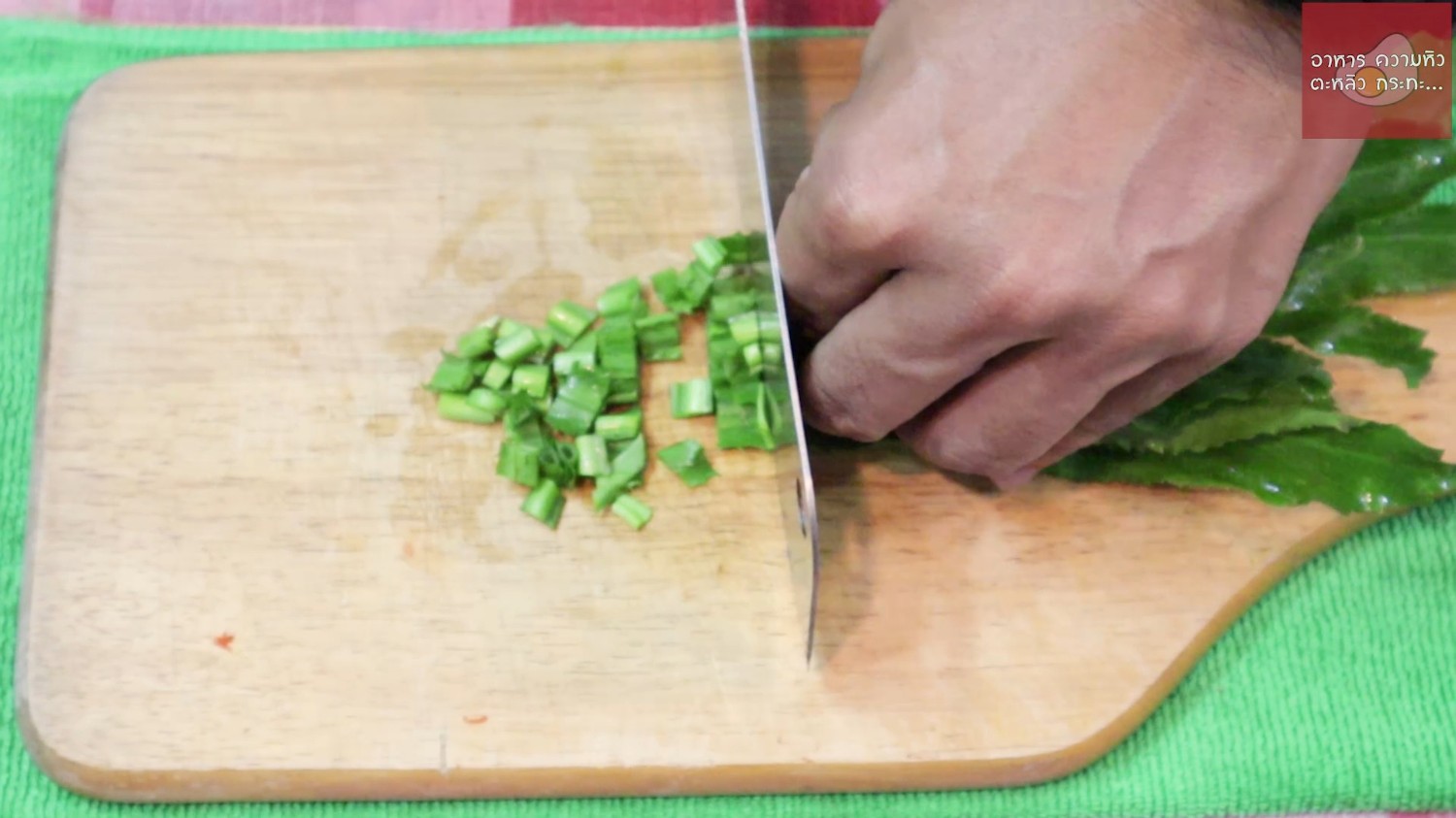 2.ซอยผักชีฝรั่งเป็นท่อนเล็กๆ เพิ่มสีสัน