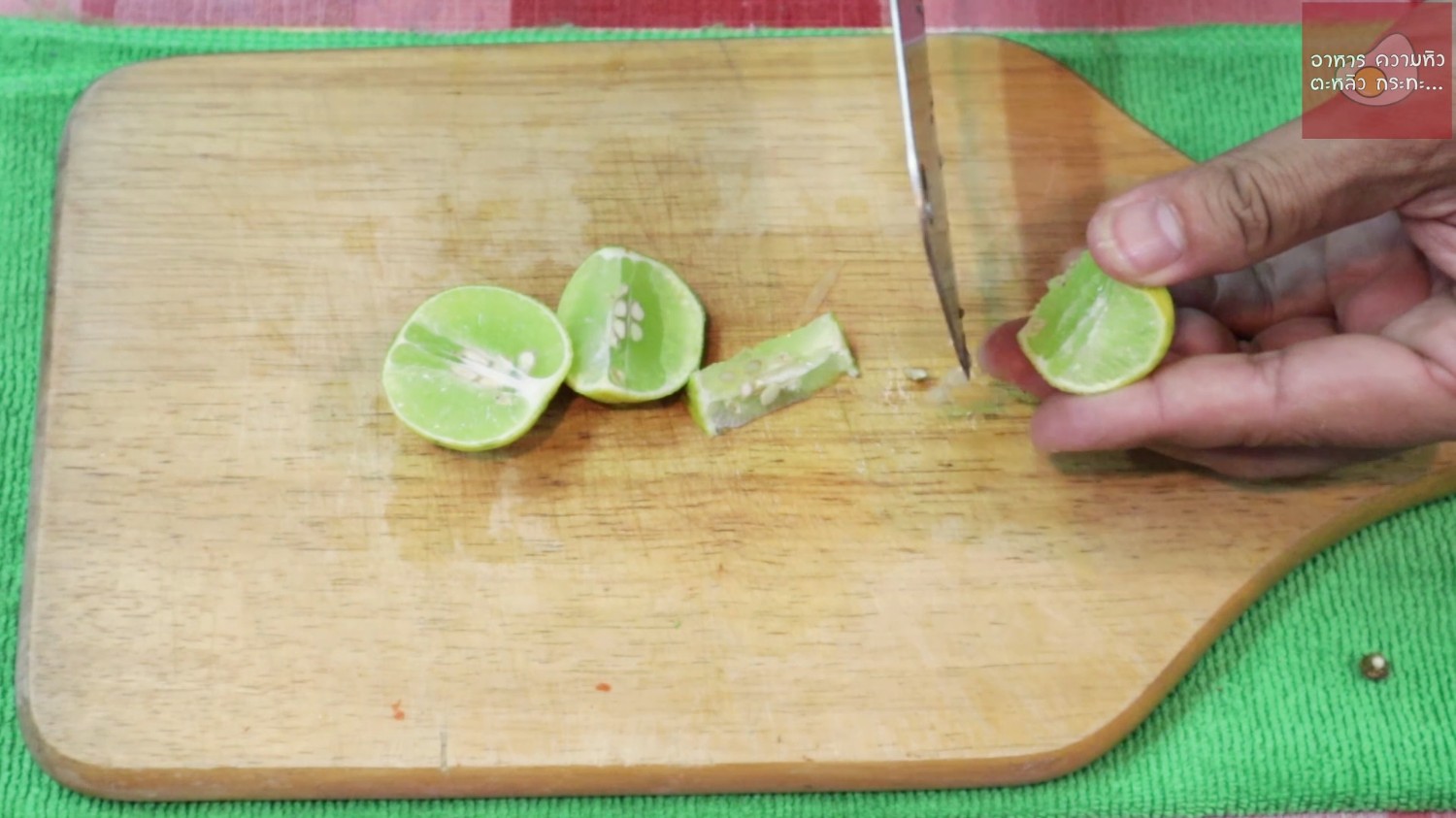 ซอยหอมหัวใหญ่เป็นชิ้นๆ , แล้วหั่นมะนาว เอาเม็ดออกเตรียมรอไว้ให้พร้อมเลยน๊าา า