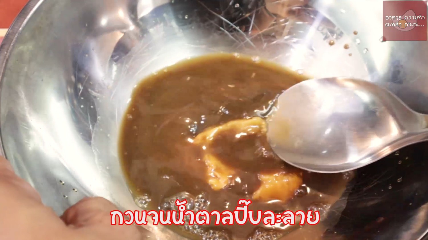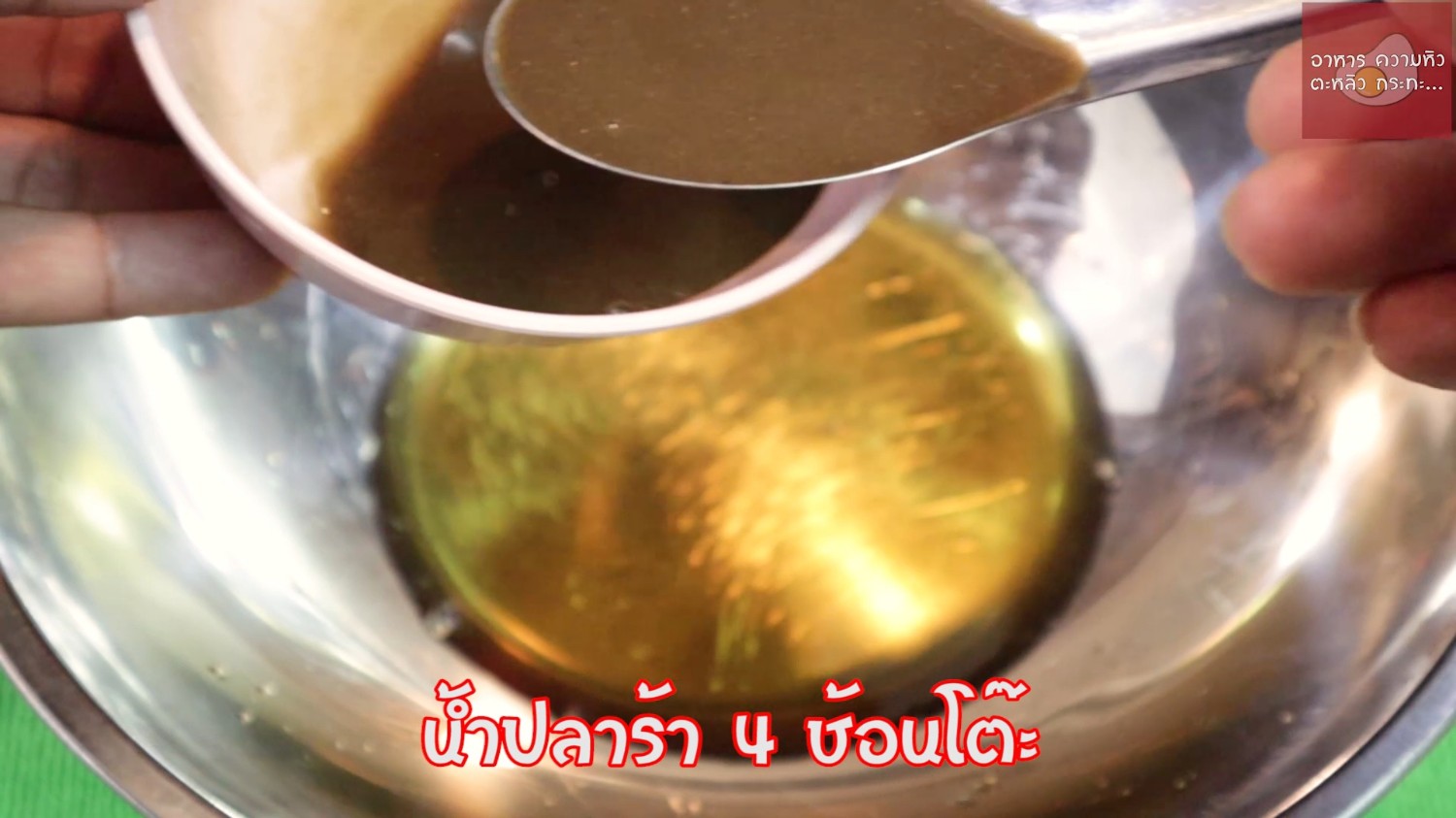 ใส่น้ำปลา , น้ำกระเทียมดอง , น้ำปลาร้า , น้ำตาลปี๊บ ลงไป