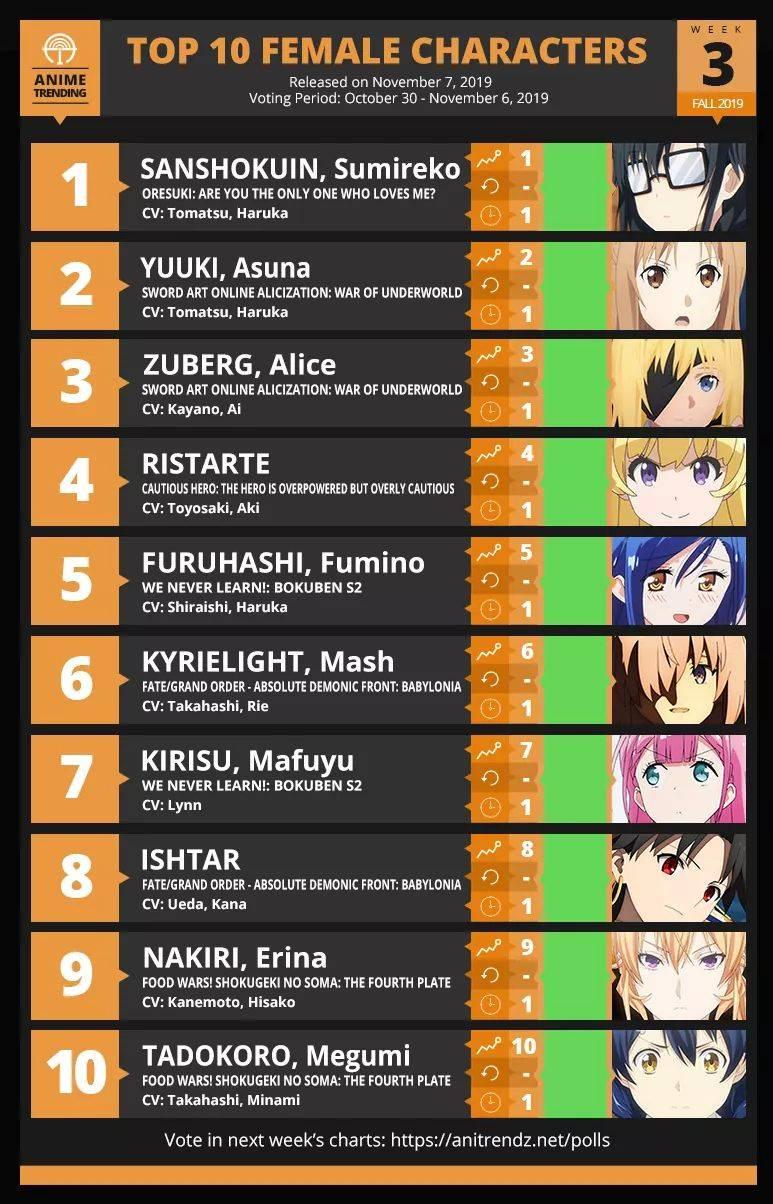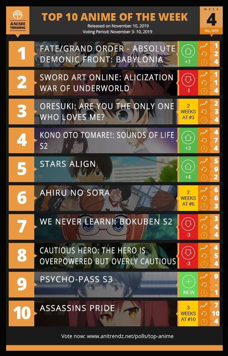 อันดันอนิเมะสัปดาห์ที่4มาแล้วค่ะ แล้วก็อันดับตัวละครสัปดาห์แรกก็มาแล้วนะคะ