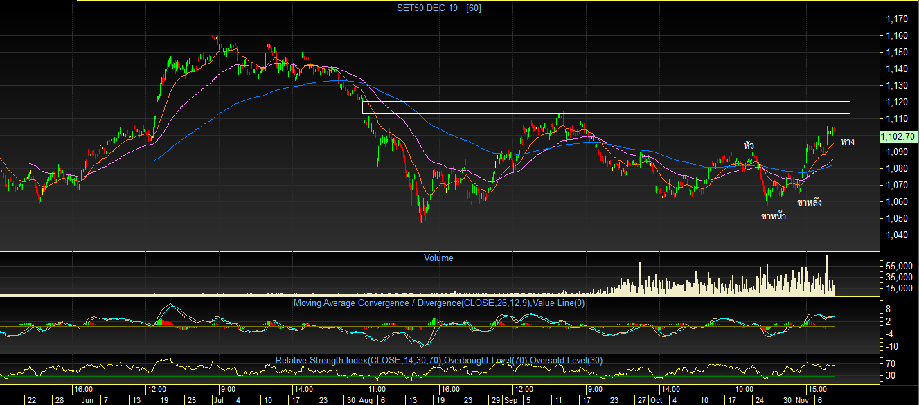 ได้ก่อตัวเป็นรูปแบบ “Dragon Pattern” และตอนนี้กำลังตวัดหาง ซึ่งมีแนวโน้มสูงมากที่ดัชนีจะกลับขึ้นไปปิด Gap ณ ระดับ 1120 จุด ที่เคยเปิดทิ้งไว้
