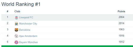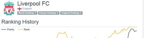 ไม่ต้องมาโม้แทนครับเพราะจะโม้เอง ลิเวอร์พูลขึ้นอยู่อันดับ1ของโลกทุกรายการโดยการจัดอันดับของ database
