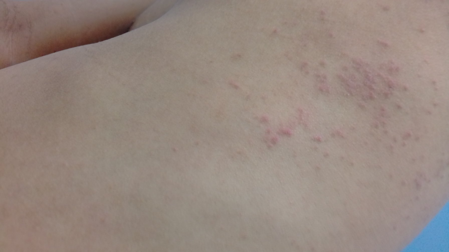 1. บริเวณสีข้าง มีผื่น ตุ่มแดง คัน ครับ