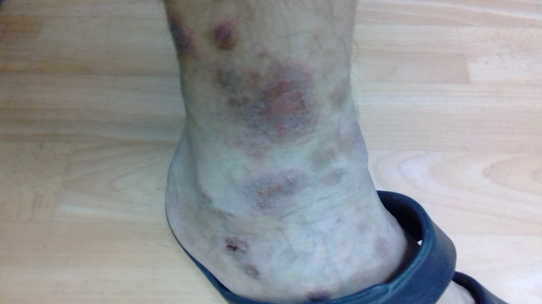 2. บริเวณเท้า มีแผลพุพอง เป็นหนอง ครับ