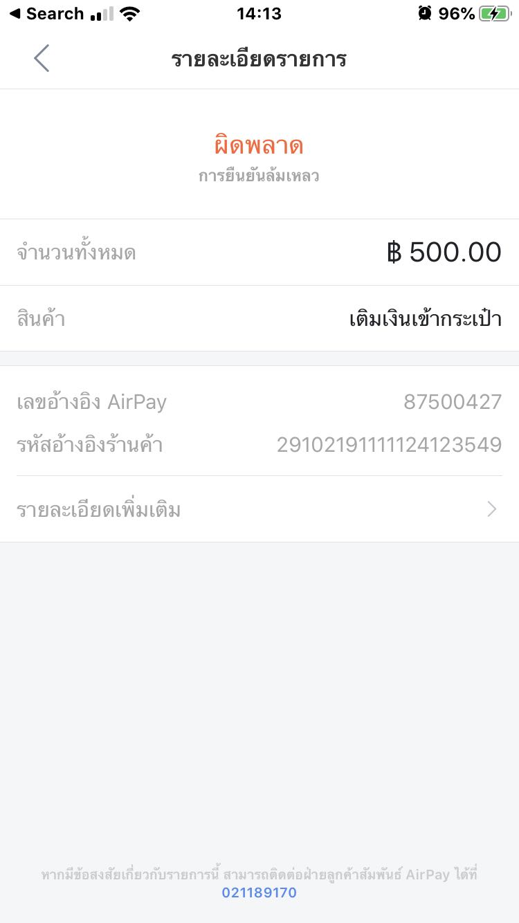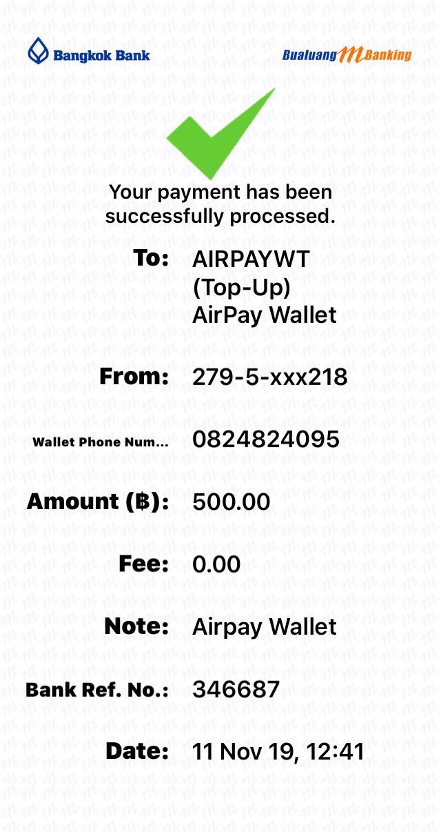 Airpay เงินไม่เข้า แต่ Bualuang M-banking หักเงินแล้ว