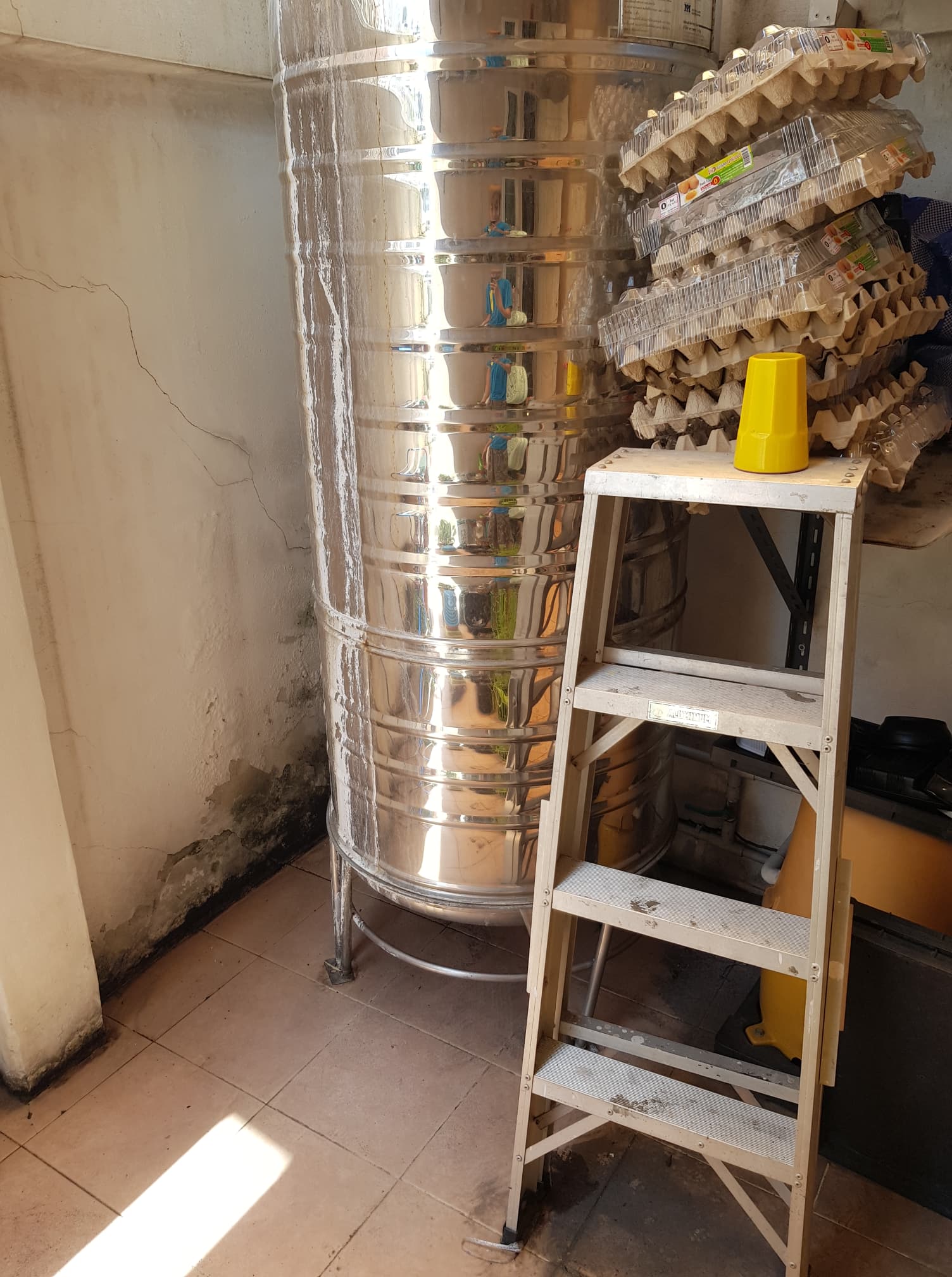 ไม่แน่ใจว่า เพราะวางแท๊งน้ำไว้ตรงนี้ด้วยไหม เลยทรุดเรื่อยๆ ครับ
