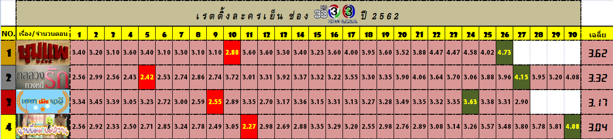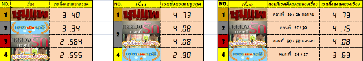 << สรุปเรตติ้ง มหกรรมละครดองตอนเย็น ช่อง3HD ปี62 >> ทั้ง4เรื่อง หลัง "เฮฮาเมียนาวี" จบลง