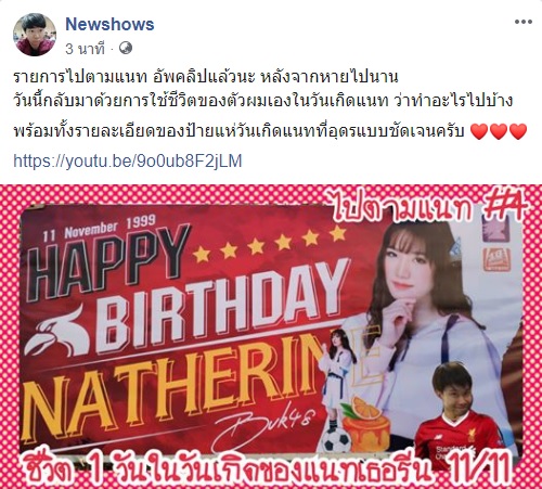เริ่มต้นด้วยการสรุป live วันเกิด เมื่อคืนจากเพจ สมาคมคนตันแน Natherine BNK48 กันครับ