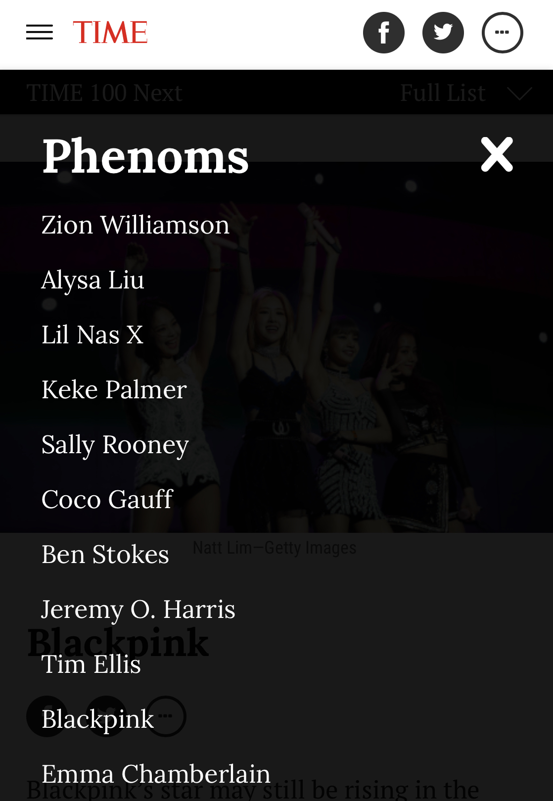 TIME ประกาศBlackpink ติด 1ใน #TIME100Next ปี2019 ร่วมกับBillie ,Camilo cabello,Lil Nas XและEzra Miller