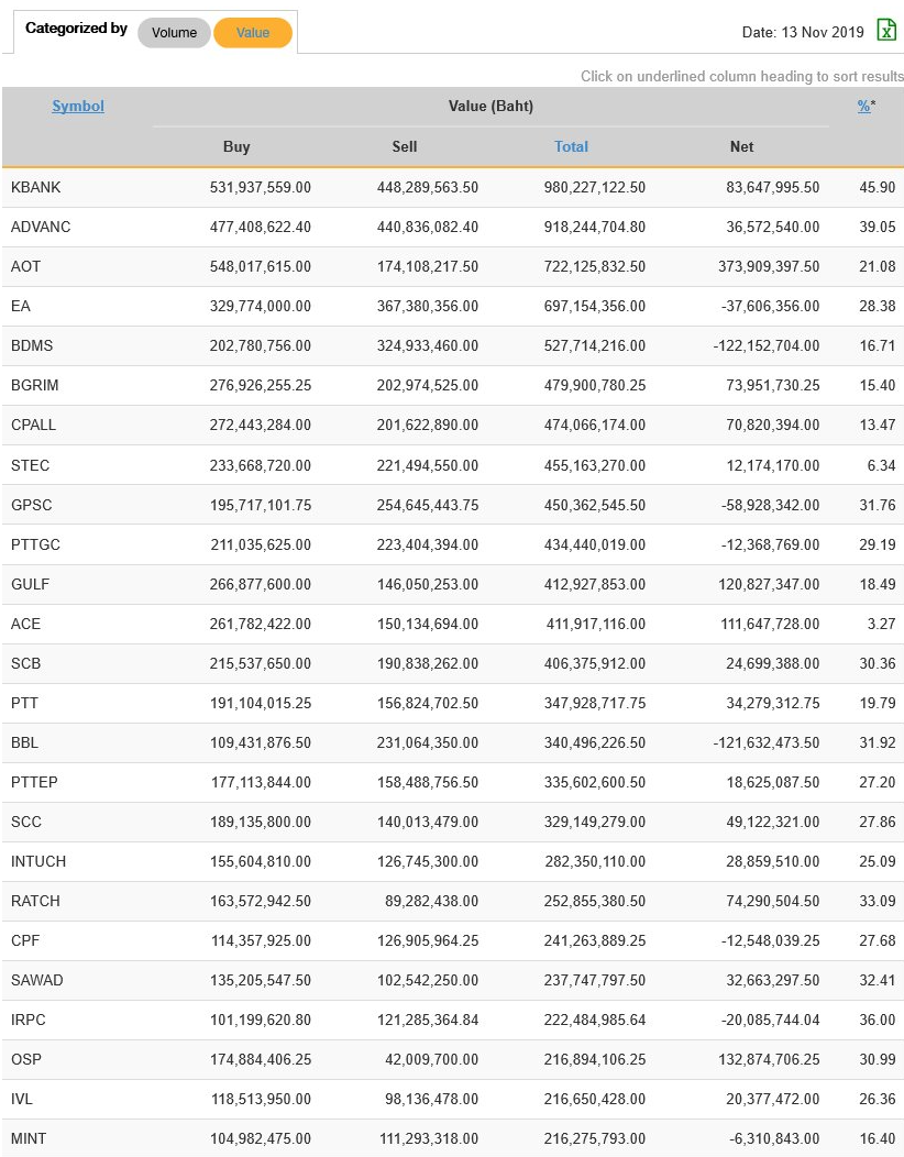 นักลงทุนต่างชาติ NVDR ซื้อ-ขาย สูงสุด 25 อันดับ 13/11/62