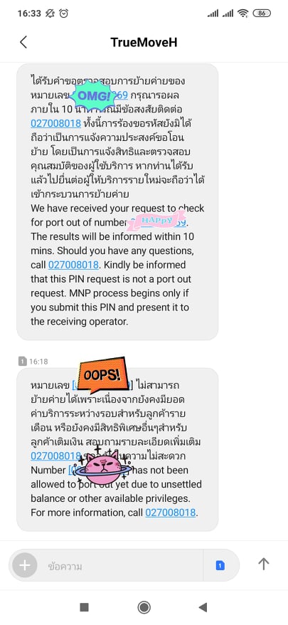 Truemove H ย้ายค่ายไป AIS ไม่ได้ ทั้งๆที่เป็นเบอร์เติมเงินครับ