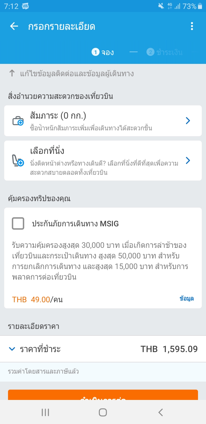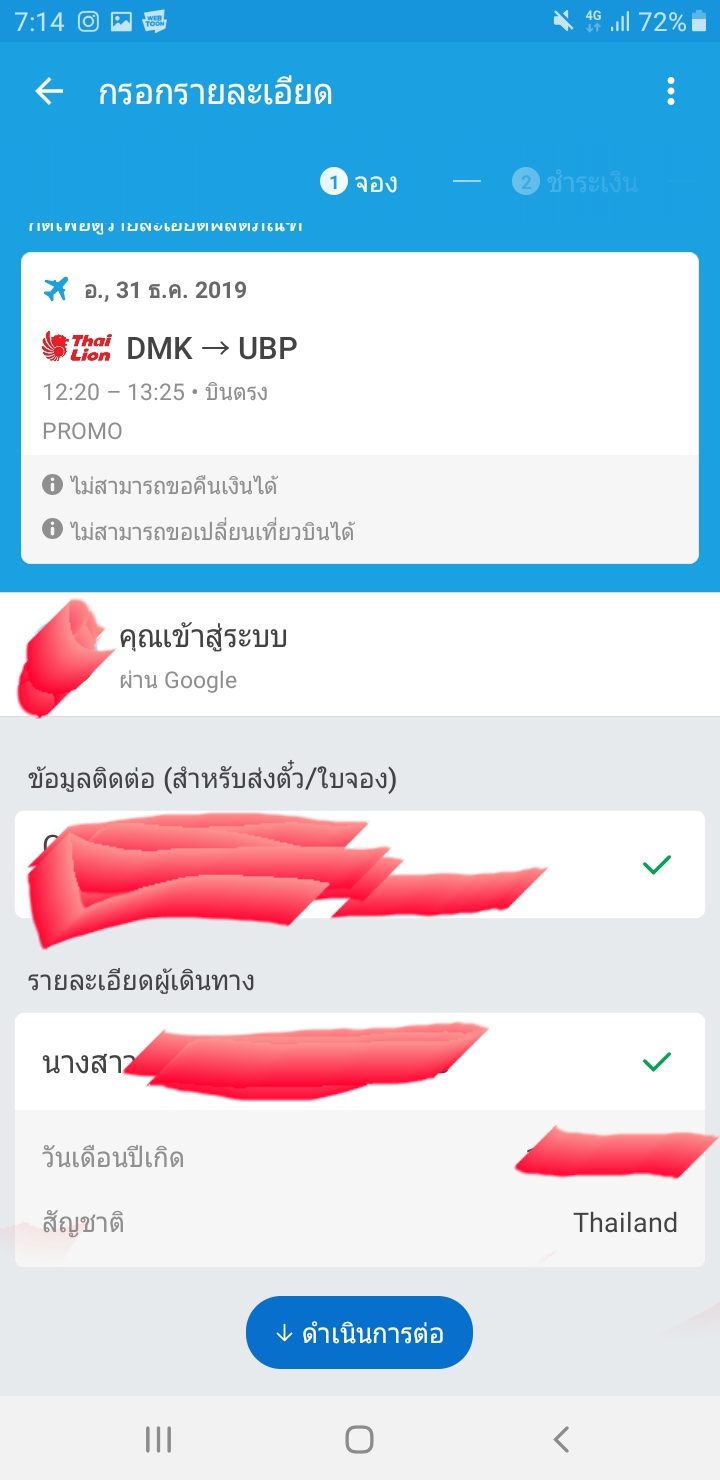 ขอสอบถามหน่อยค่ะพอดีเราจะจองตั๋วกรุงเทพไปอุบล เข้าไปในแอปก็เลือกเที่ยวบินกรอกข้อมูลส่วนตัวตามภาพที่1