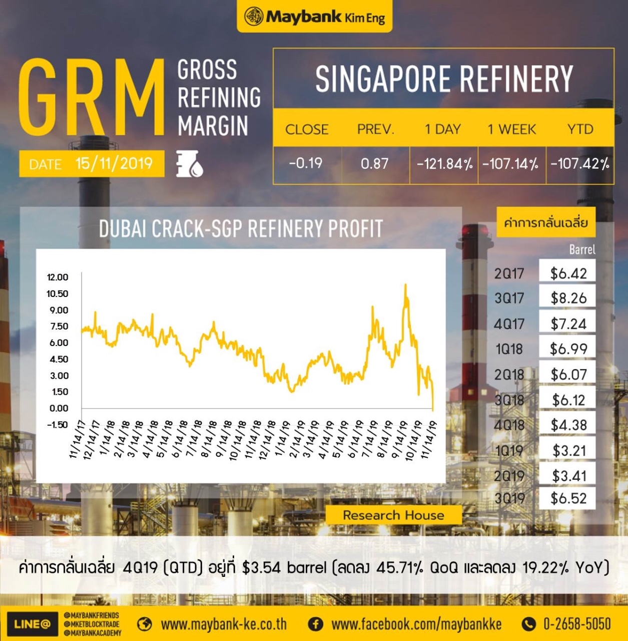 วันนี้ โรงกลั่นหยุดทำงานมั้ย ค่าการกลั่น -0.31$ ติดลบ นะครีบ