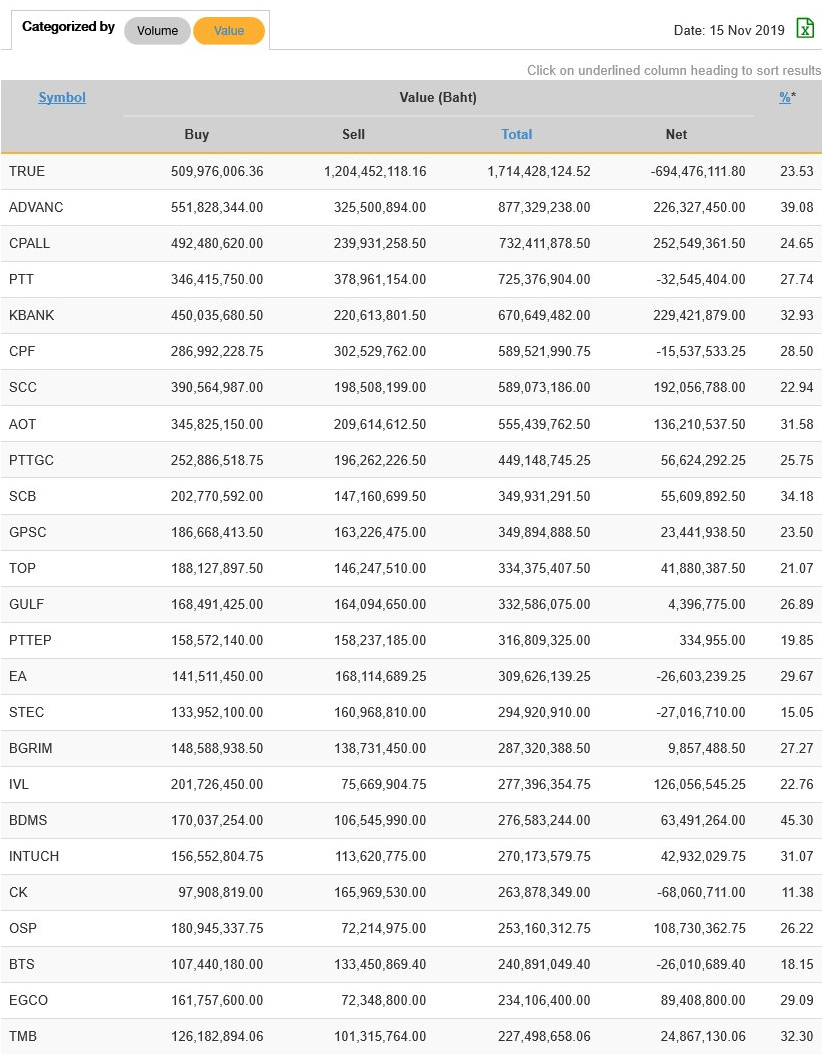 นักลงทุนต่างชาติ NVDR ซื้อ-ขาย มูลค่าสูงสุด 25 อันดับ 18/11/62