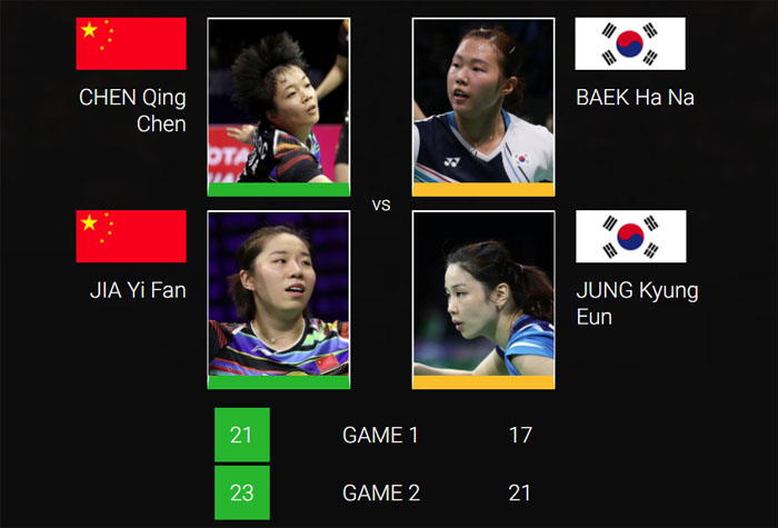 SF [WD] CHEN Qing Chen-JIA Yi Fan vs BAEK Ha Na-JUNG Kyung Eun