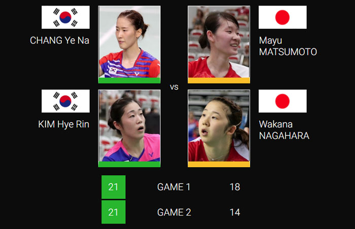 SF [WD] CHANG Ye Na-KIM Hye Rin vs Mayu MATSUMOTO-Wakana NAGAHARA