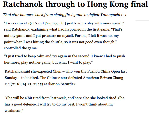 ที่มา : https://www.bangkokpost.com/sports/1795679/ratchanok-through-to-hong-kong-final