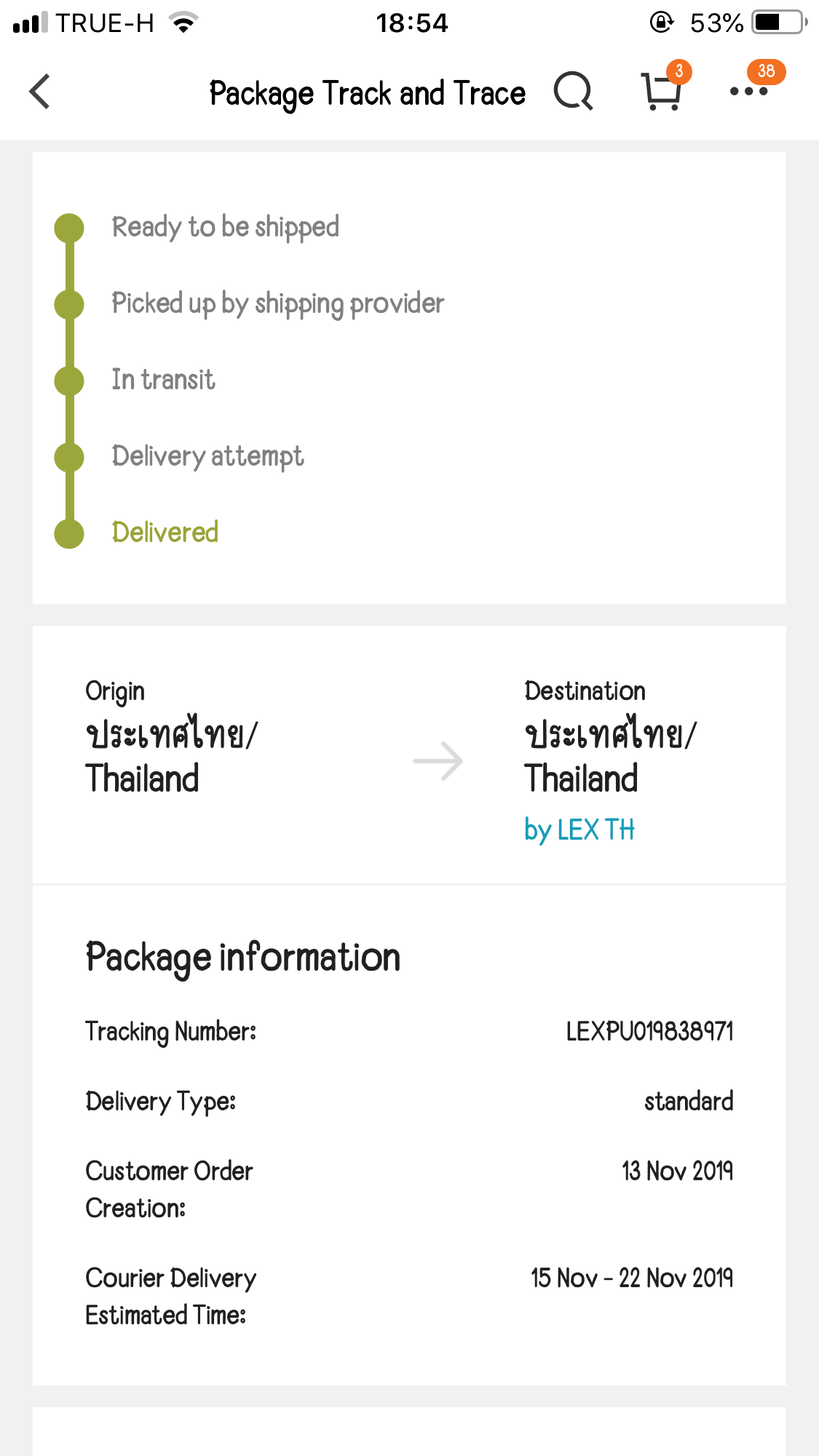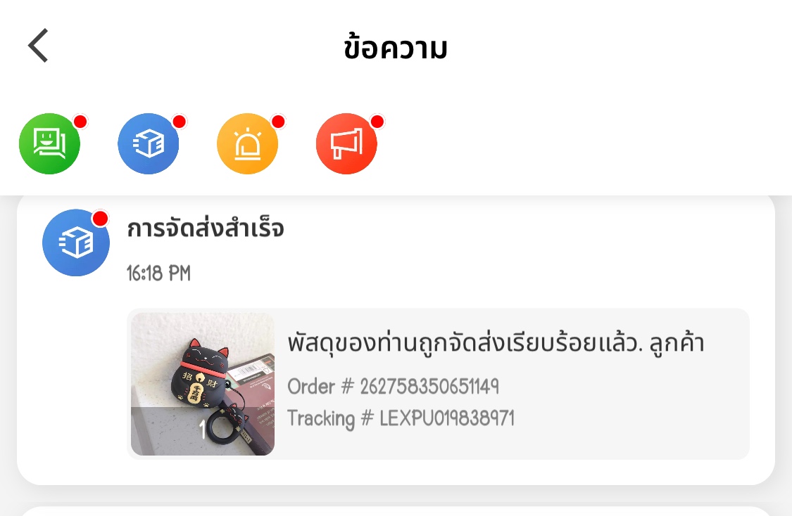 สถานะส่งสินค้าแล้ว ตอน 16/11/2562 16.18
