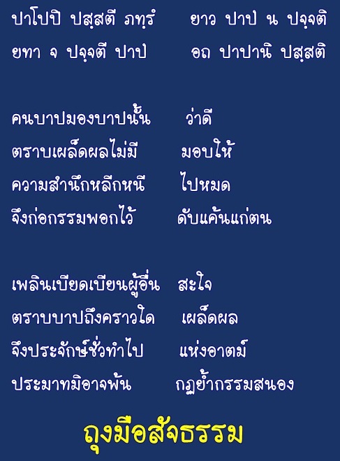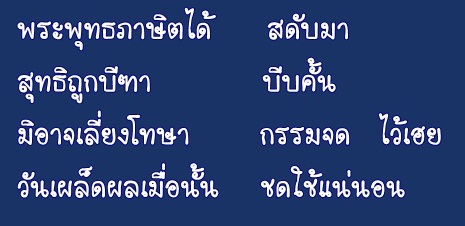 และบทกวีต่อไปนี้ เป็นโคลงสี่ แนวธรรม เตือนผู้อ่านเรื่องของกรรม และส่วนหนึ่งเป็นการให้กำลังใจใครก็ตามที่ถูกกระทำโดยอธรรม ให้เจริญขันติธรรม