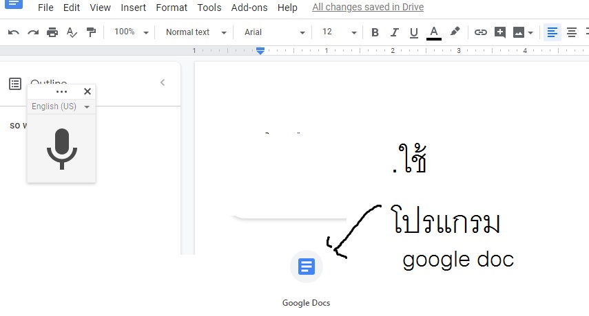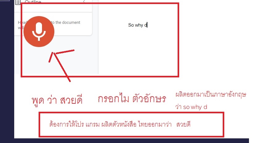 ใช้ โปรแกรม เเปลง เสียงพูดให้เป็น ข้อความบน กูเกิล พบ เเต่วิธี พูดเป็นภาษาอังกฤษ เเลว ส่งข้อความออกมา
